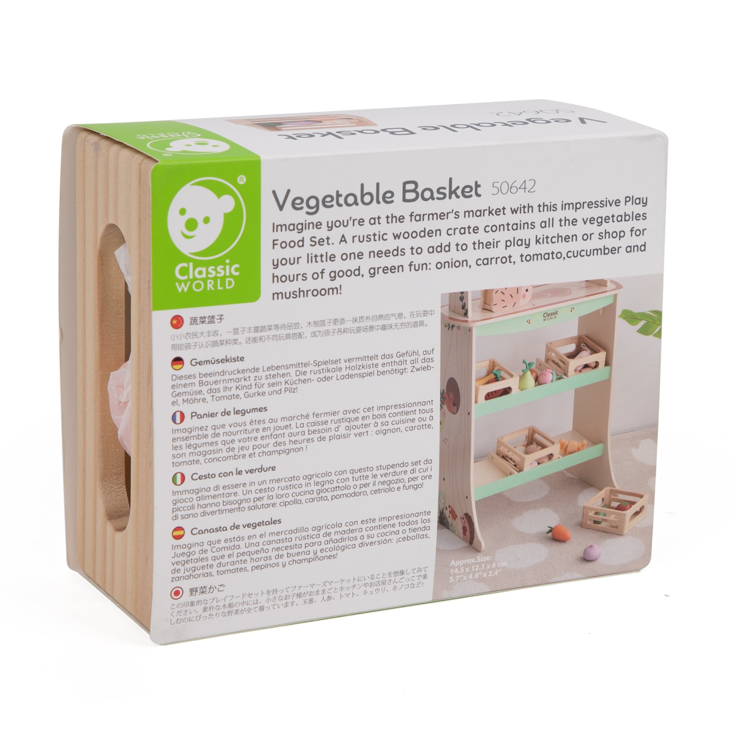 Köögiviljakorv Classic Worldilt on komplekt lastele, kes armastavad loovat mängu köögis või poes. Puidust elemendid, mis kujutavad erinevaid köögivilju, võimaldavad vabalt rolle mängida, arendades fantaasiat ja sotsiaalseid oskusi. Iga komplekti koostisosade valmistamiseks on kasutatud kõrgekvaliteedilist puitu. Komplekt sobib suurepäraselt nii iseseisvaks mänguks kui ka koosolekute loomiseks eakaaslaste või täiskasvanutega.