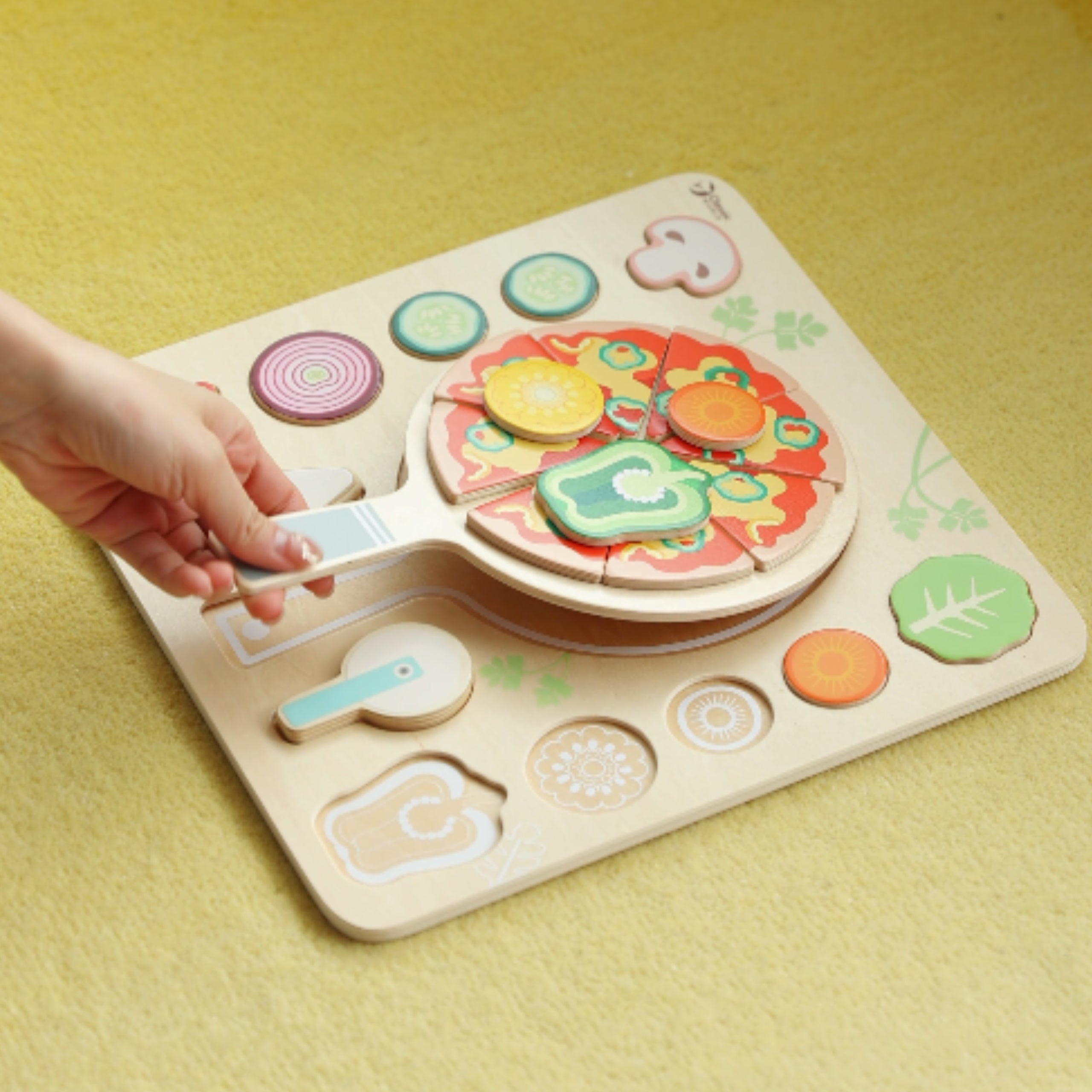 Puitpuss „Pizza Puzzle Board” brändilt Classic World on värviline komplekt 22 elementi, mis muudab mängu loominguliseks kokkamiseks. Komplekt on mõeldud lastele alates 2. eluaastast ja sisaldab liikuvad koostisosad, spaatlit ja nuga — ideaalne oma pitsade koostamiseks ja täpsuse harjutamiseks. Toode on valmistatud siledast puidust, mis on värvitud ohutute värvidega, mistõttu on mängimine meeldiv ja vastupidav.
