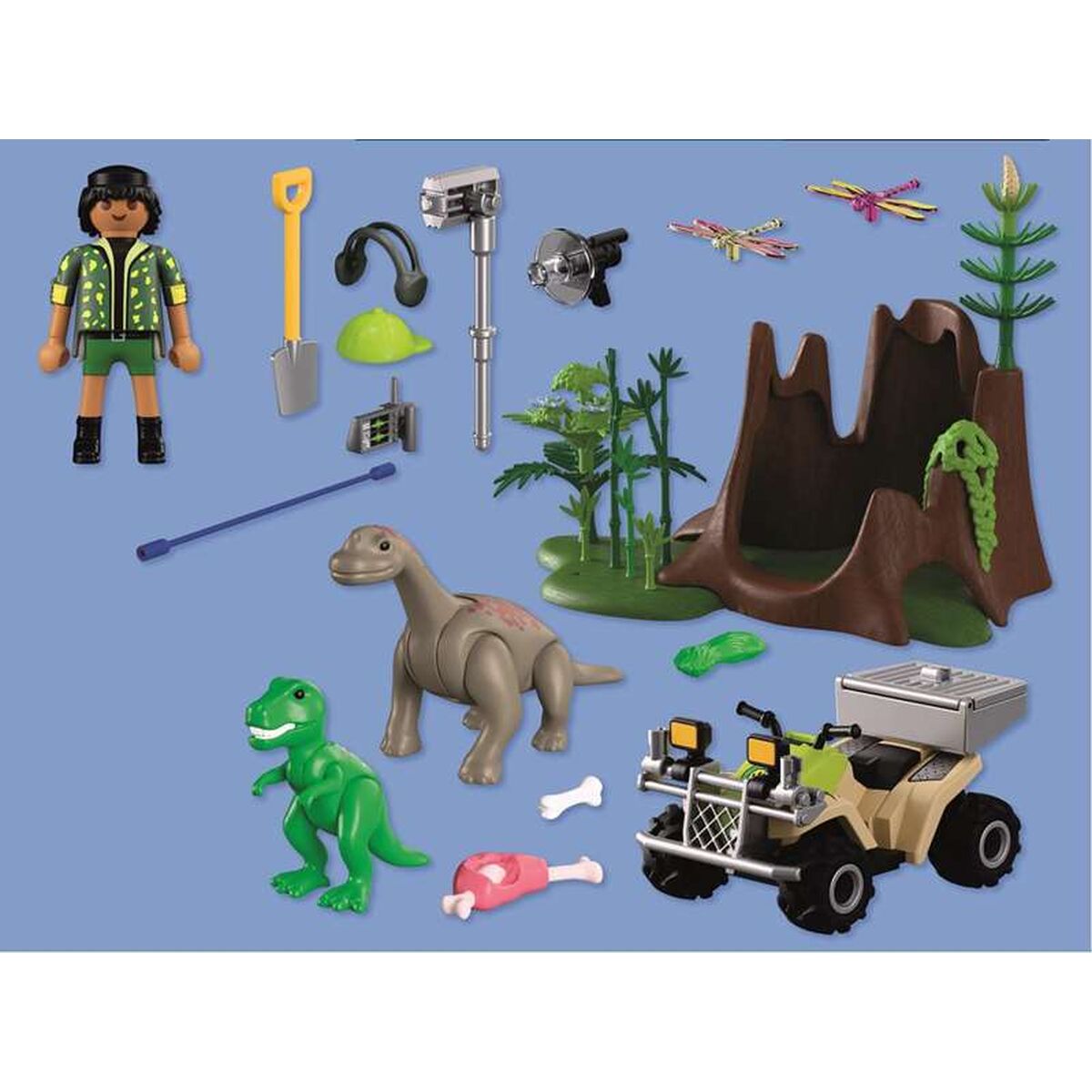 Playset Playmobil 72069 Dinosauruse peidukoht pakub lastele alates 4. eluaastast täielikku ja detailset mängustseeni, mis sobib eelajalooliste seikluste taasloomiseks hõlpsasti käsitsetavate figuuride ja tarvikutega. Vastupidavast, kvaliteetsest plastikust, Playmobili kaubamärgile omane komplekt sisaldab 58 osa mitmevärvilise kujundusega, milles domineerivad rohelised toonid, luues džungli ja loomuliku peidukoha dinosaurustele. Komplektist saab ehitada baasi või varjupaiga, kus lapsed saavad dinosauruseid peita, kaitsta ja avastada, arendades fantaasiamängu ja oma lugude loomist. Tükid on kohandatud laste kätele, ilma keerukate mehhanismideta ja ümarate servadega, mis hõlbustab kokkupanekut ja iseseisvat mängu, järgides vanusele soovitatud järelevalvet. Kuna tegu on Playmobil playset-iga, sobib see kokku teiste sama sarja komplektidega, võimaldades mängumaailma laiendada uute figuuride, sõidukite või dinosauruste ja seikluste stseenidega. Valmistatud Hiinas, järgides kaubamärgi tavapäraseid kvaliteedistandardeid, ühendab see vastupidavuse ja hea viimistluse iga elemendi detailides. See Playmobil 72069 dinosauruse peidukoht on kindel valik neile, kes otsivad dinosauruste teemalist komplekti, milles on palju osi ning vastupidav ja mitmekülgne mängukeskkond.