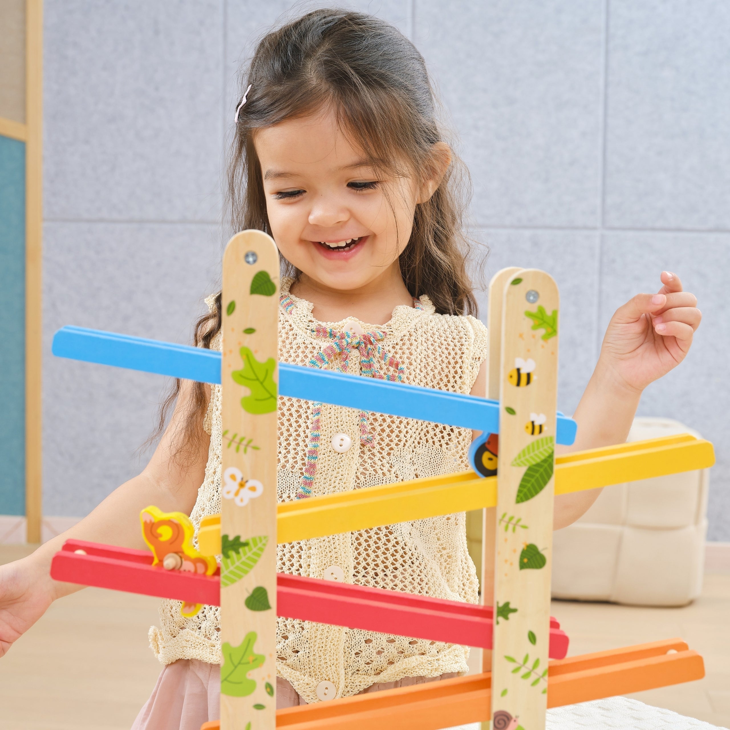 Tutvu ainulaadne mänguasi kõige nooremateleSeiklus Slipp kaubamärgilt VIGA, mis rõõmustab pisipere juba alates 18. elukuust! Värvilised loomad libisevad allamäge kaldteelt, keerledes nagu ristid, mis köidavad tähelepanu ja ei lase igavleda. Tänu stabiilsele, laienenud alusele on mänguasi ohutu ja mugav kasutada. Liikuvad elemendid kutsuvad lapsi avastama, eksperimentima ja koordinatsiooni arendama. See on rõõmsa mängu ja õpetamise ühendamine ühes!