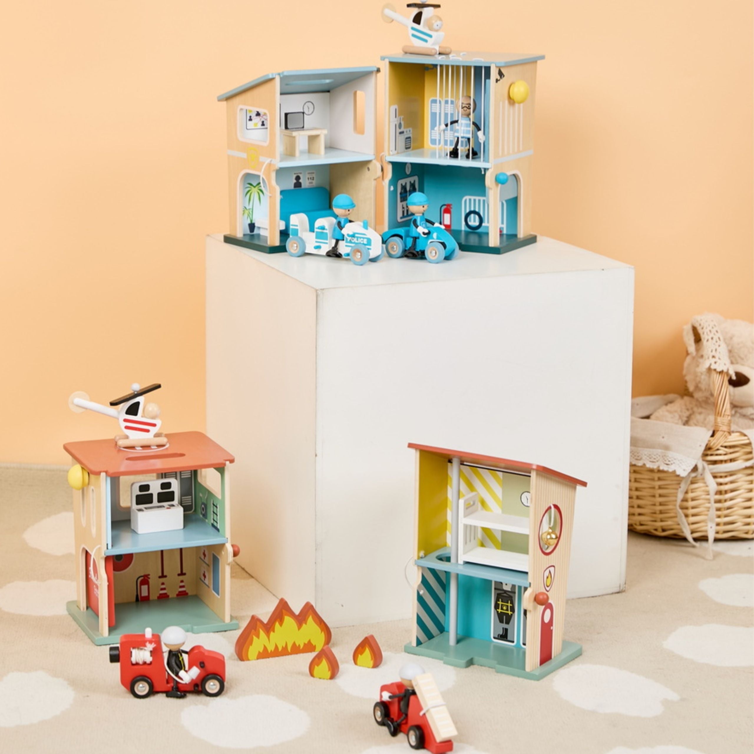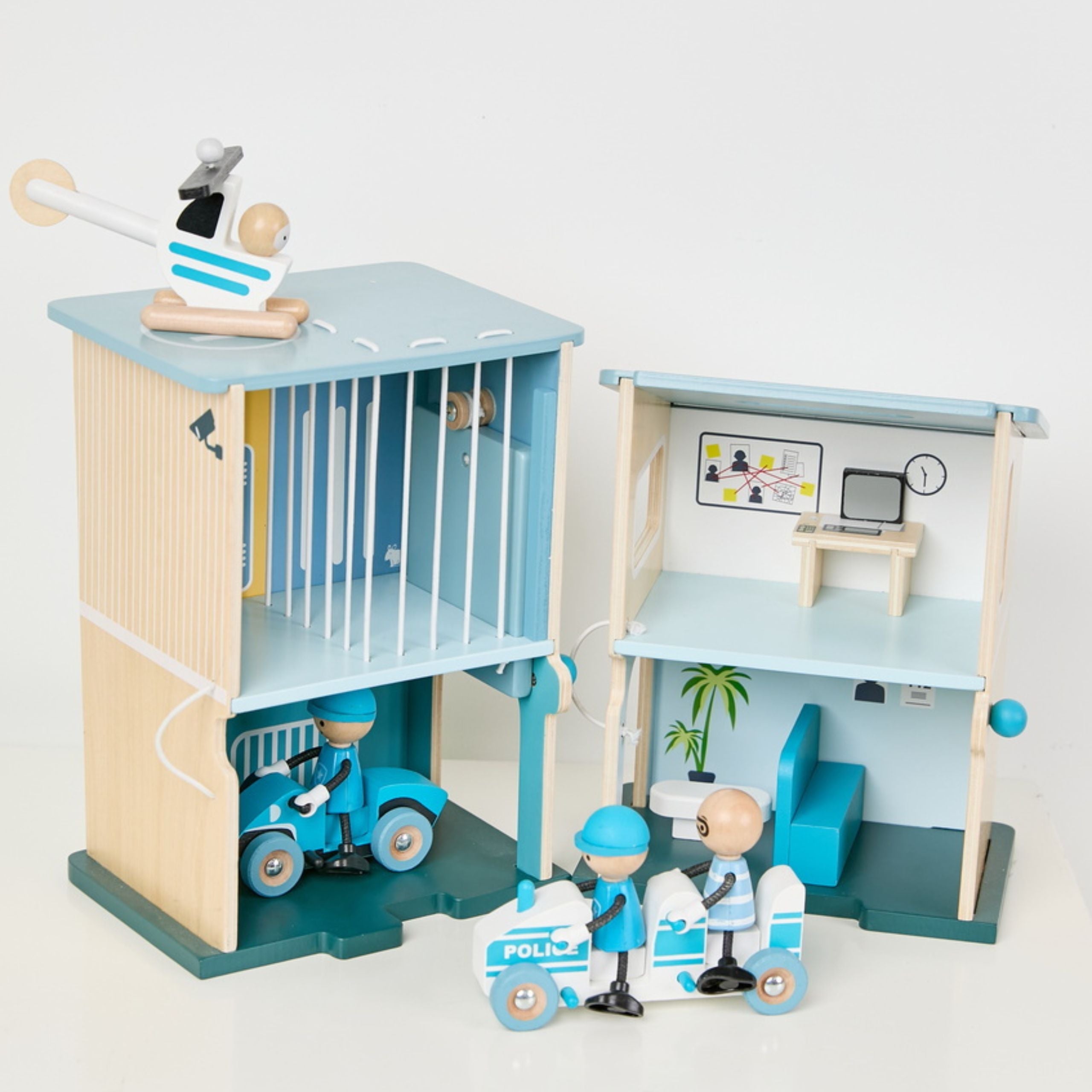 Komplekt Classic World Politsei Jaam 12 tk on täielik mänguasi, mis võimaldab teie lapsel kehastuda julgeks politseinikuks ja hoolitseda linna korrashoiu eest! Valmistatud looduslikust puidust, hämmastab see komplekt oma kvaliteedi ja detailide hoolikusega. Politseijaam on disainitud Pariisis, mis tagab selle ainulaadse stiili ja funktsionaalsuse. Komplekt sisaldab kahte hoonet, millest ühes on cells ja teises küsitlemisruum. Erinevate konfiguratsioonide ja avatud uste abil saab laps vabalt elemente manipuleerida, luues oma stsenaariume. Mänguasi on ideaalne kujutlusvõime, keeleoskuste ja peenmotoorika arendamiseks, pakkudes tunde loovat mängu.