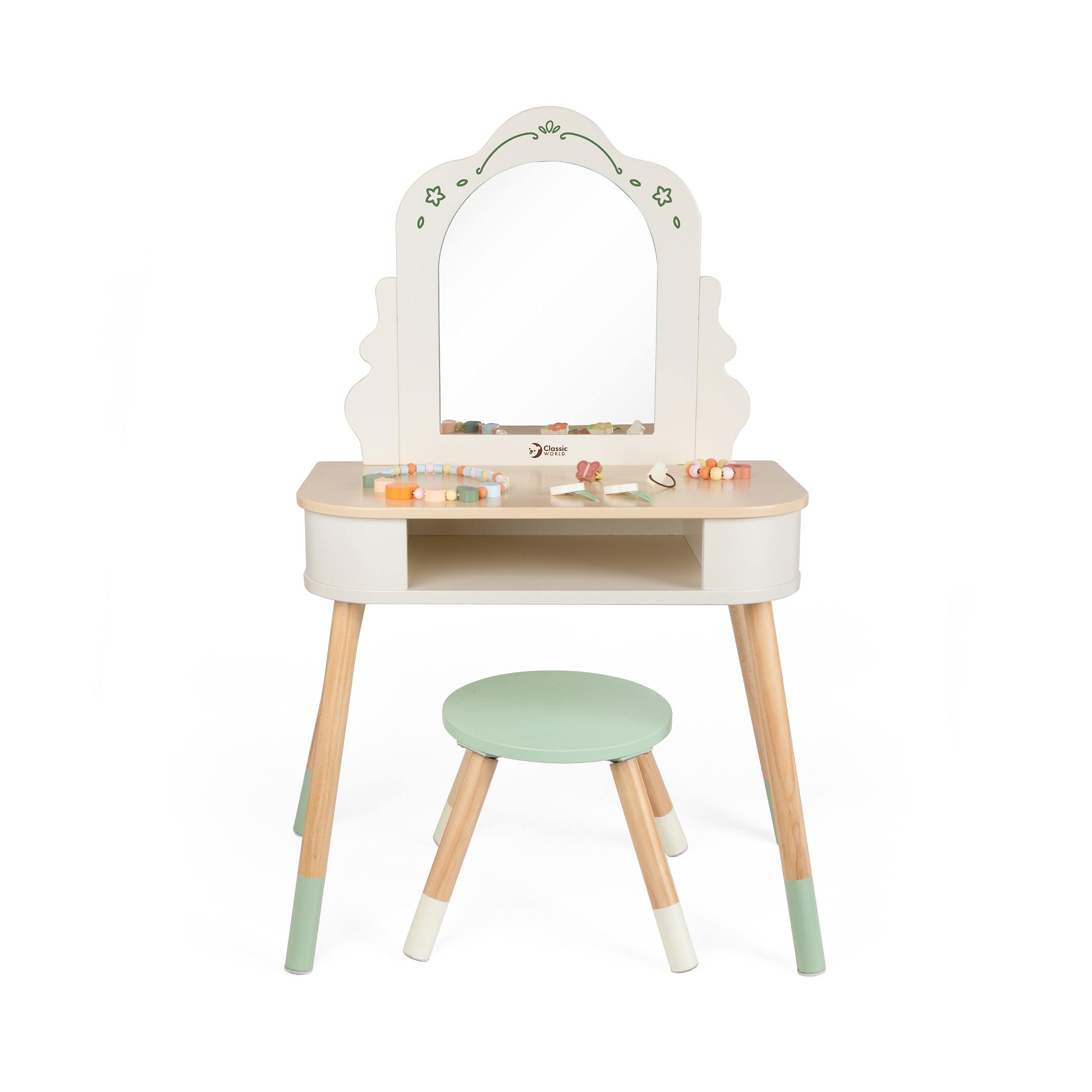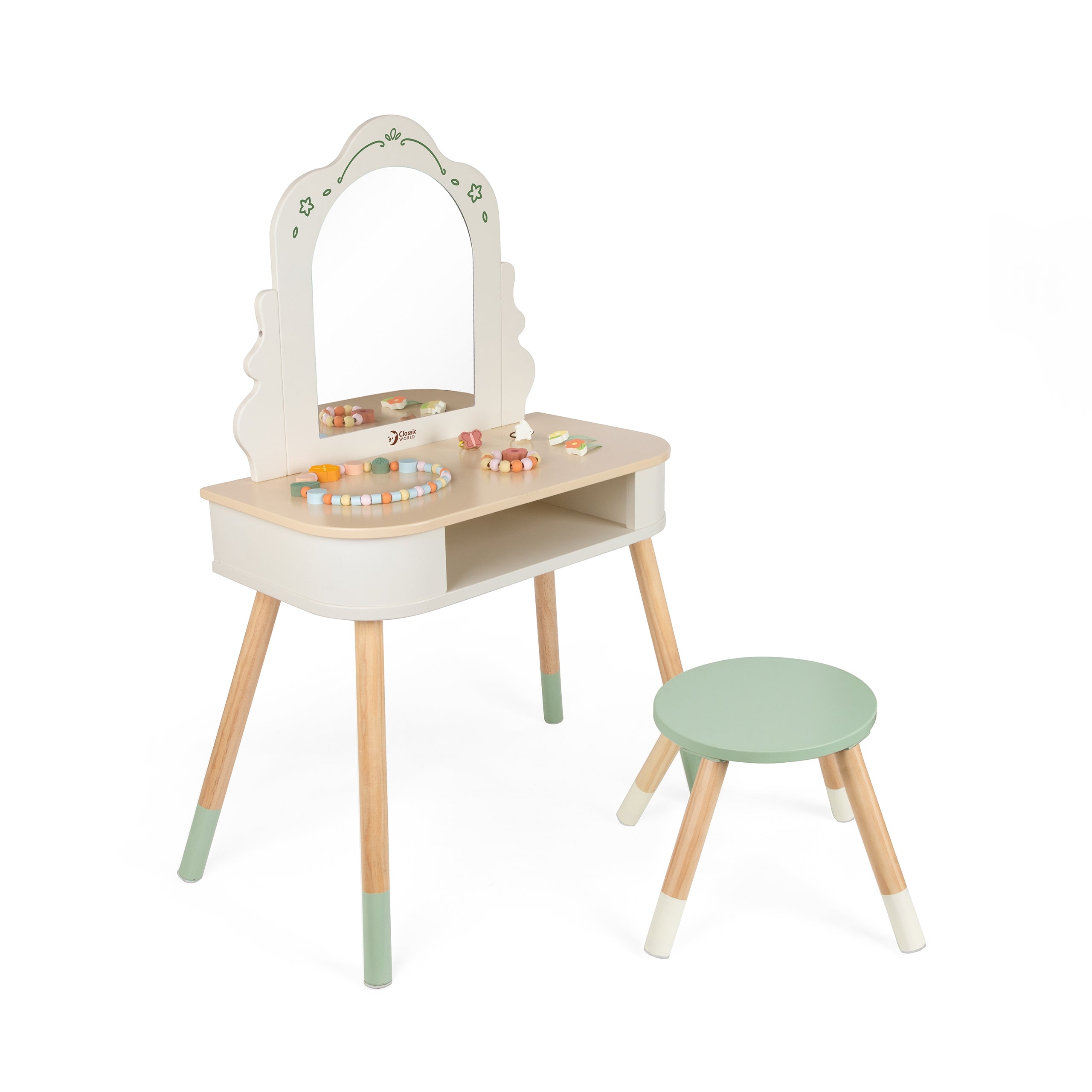 CLASSIC WORLD Puidust Lauakapp Peegliga, Tooli ja Tarvikutega Pastellne
