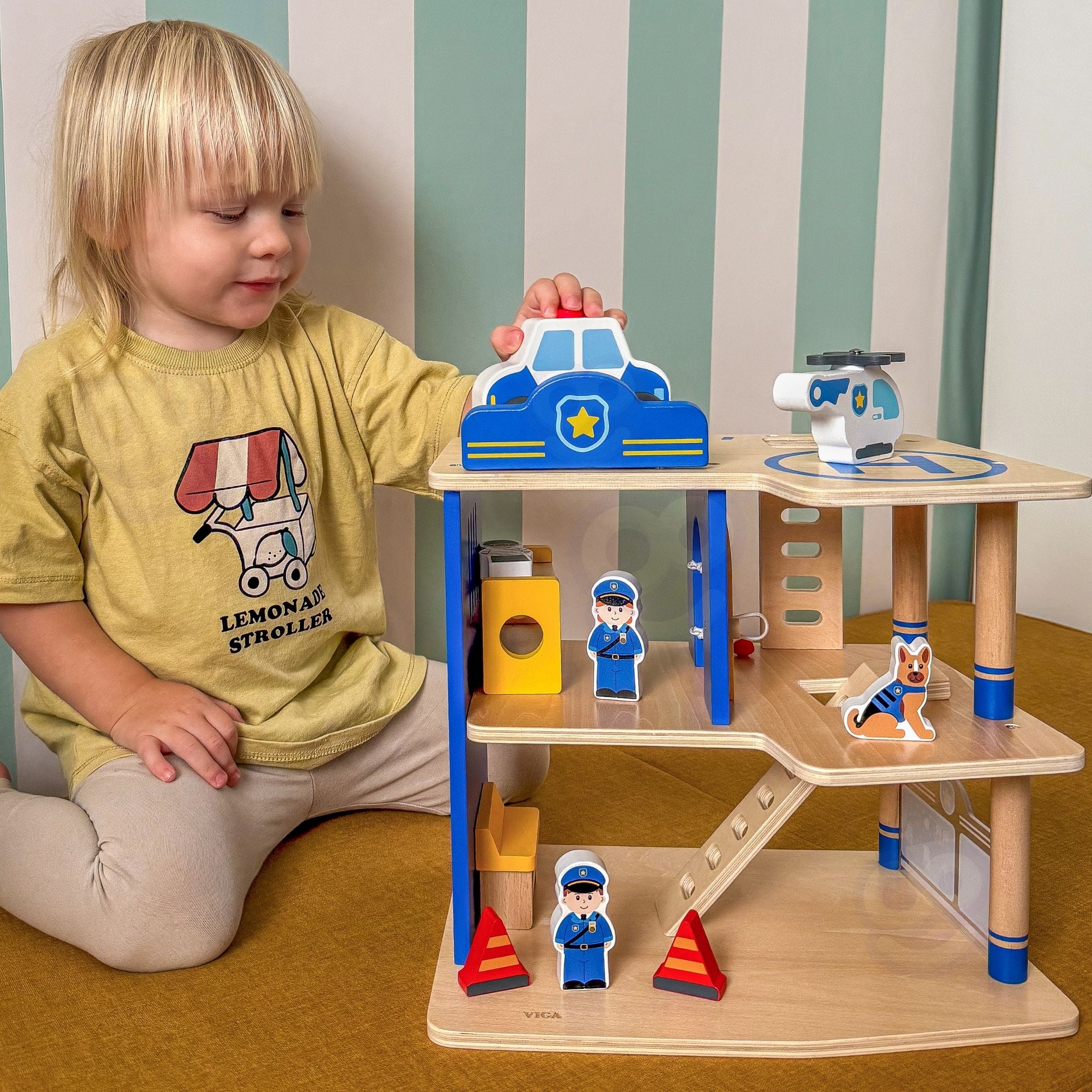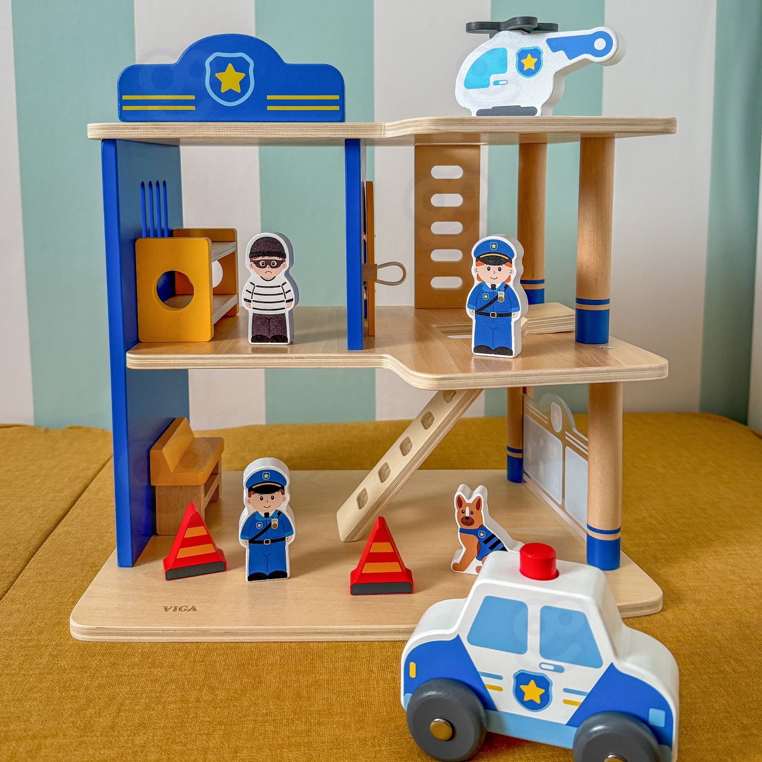 3 Korruseline Politseijaam marki VIGA on ideaalne mänguasja väike politseinikele, kes armastavad tegevust täis stsenaariume! Tänu rikkalikule varustusele ja realistlikele elementidele saavad lapsed kehastuda politseinikeks, korraldada tagaajamisi ja lahendada kuritegude mõistatusi, arendades samal ajal loomingulisust ja probleemide lahendamise oskusi.