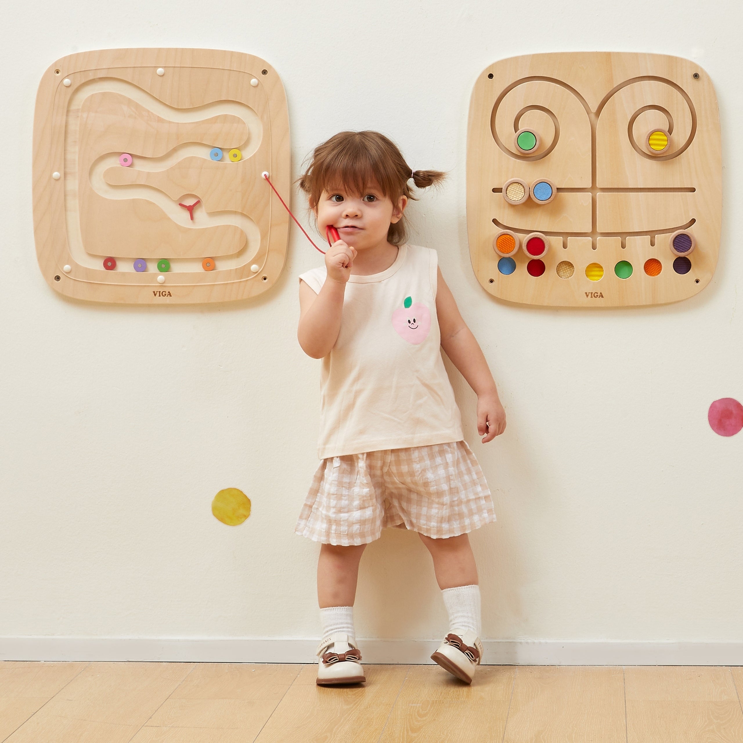 Tutvu seina paneeli "Puuduta ja Kohanda" firmalt VIGA, mis on suurepärane hariv mänguasi, mis keskendub ennekuulmisch ja visuaalse tunde arendamisele lapses. Plaadil on 7 ainulaadset tekstuuri ja värvi, mida laps saab labürindis liigutada, sobitades need omavahel. Mäng õpetab ära tundma ja eristama, harjutab kognitiivseid oskusi ning arendab sensoorset teadlikkust ja keskendumisvõimet. See puidust paneel on ideaalne täiendav mängunurk lapse toas, lasteaias või beebihinduses. Luba lapsel uurida ümbritsevat maailma läbi aistingute. Mänguasi pakub tunde pikaajalist põnevat õppimist mänguga seotud tegevustega ning tugev konstruktsioon tagab vastupidavuse ja ohutuse.
