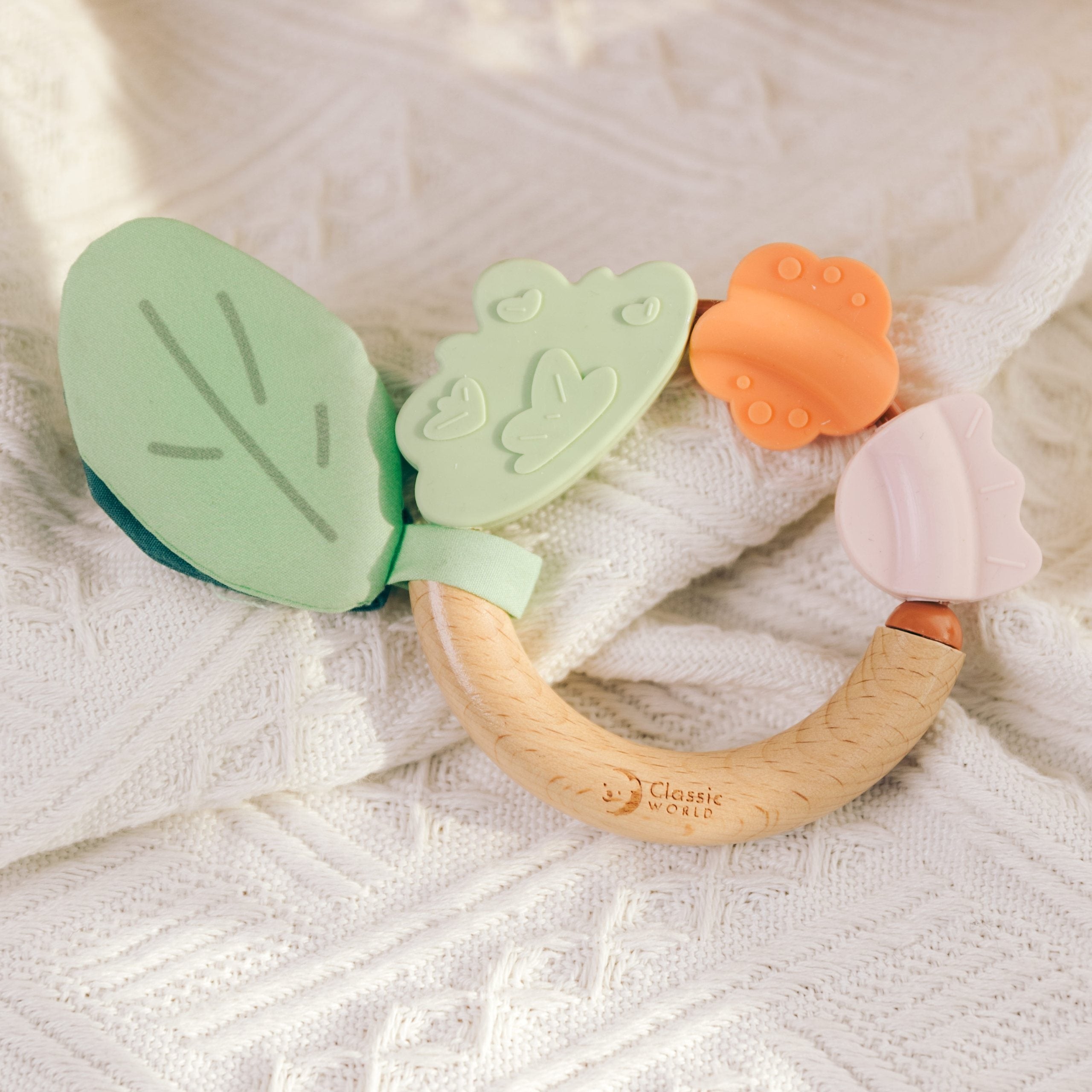 Puitud ritsik Classic World on ohutu, stiilne ja keskkonnasõbralik mänguasi, mis on loodud spetsiaalselt väikelastele! Ritsik mitte ainult ei meeldi lapsele pehmete, stimuleerivate helide kaudu, vaid toob leevendust ka hammaste tulekuga. Loodusliku puidu ja pehme silikooni kombinatsioon stimuleerib aiste ning kutsub avastama maailma, olles ideaalne esimene näts ja ritsik iga väikelapse jaoks.
