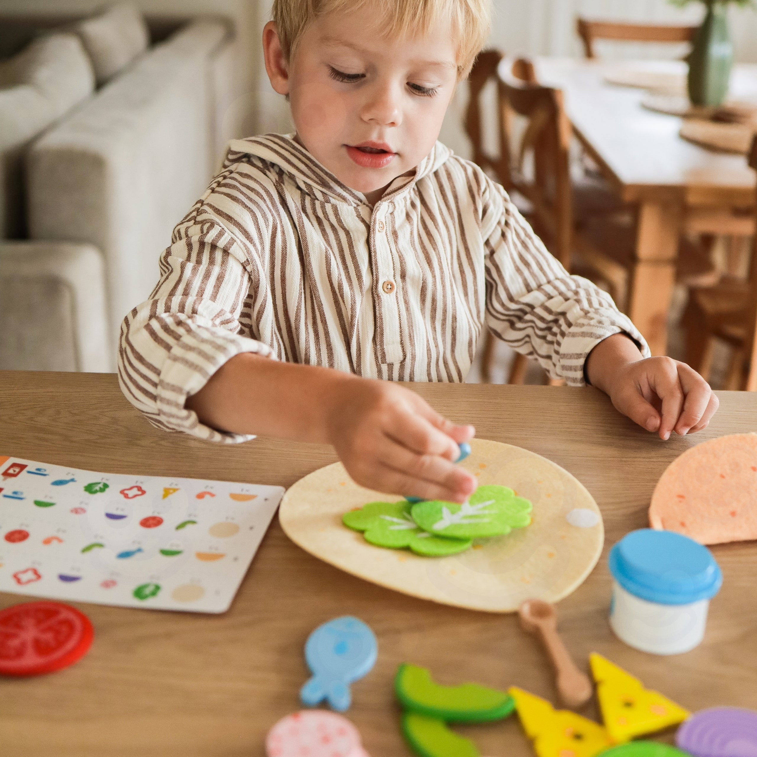 VIGA Mehhiko Roogade Tacos ja Burritos Komplekt on 27-osaline komplekt väikestele kokkadele, kes soovivad valmistada oma maitsvaid taco ja burrito! Mänguasi pakub realistlikku toiduvalmistamise mängu, arendab fantaasiat ja käelisi oskusi ning õpetab lapsi tunnma koostisosadega ja looma kulinaarseid kompositsioone.