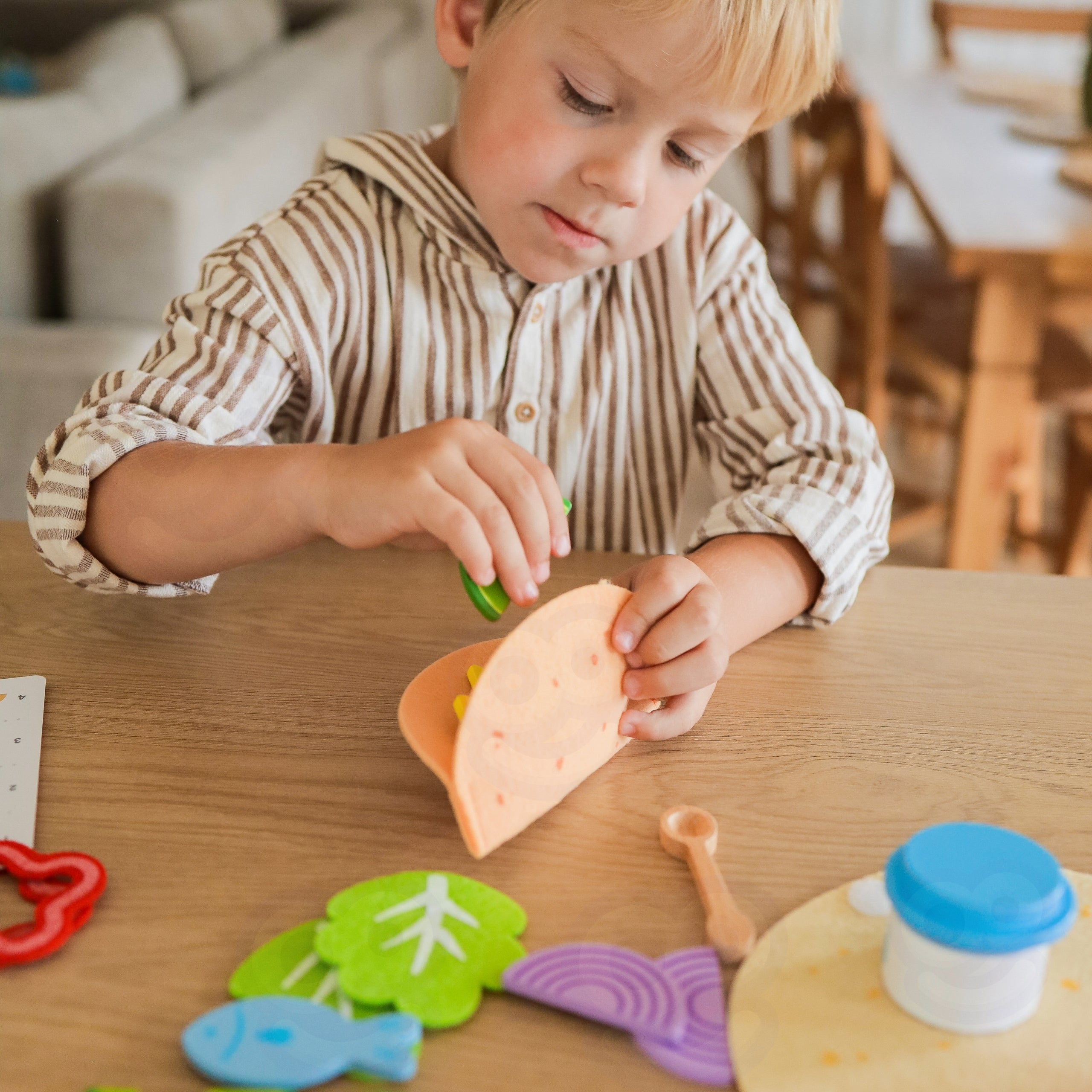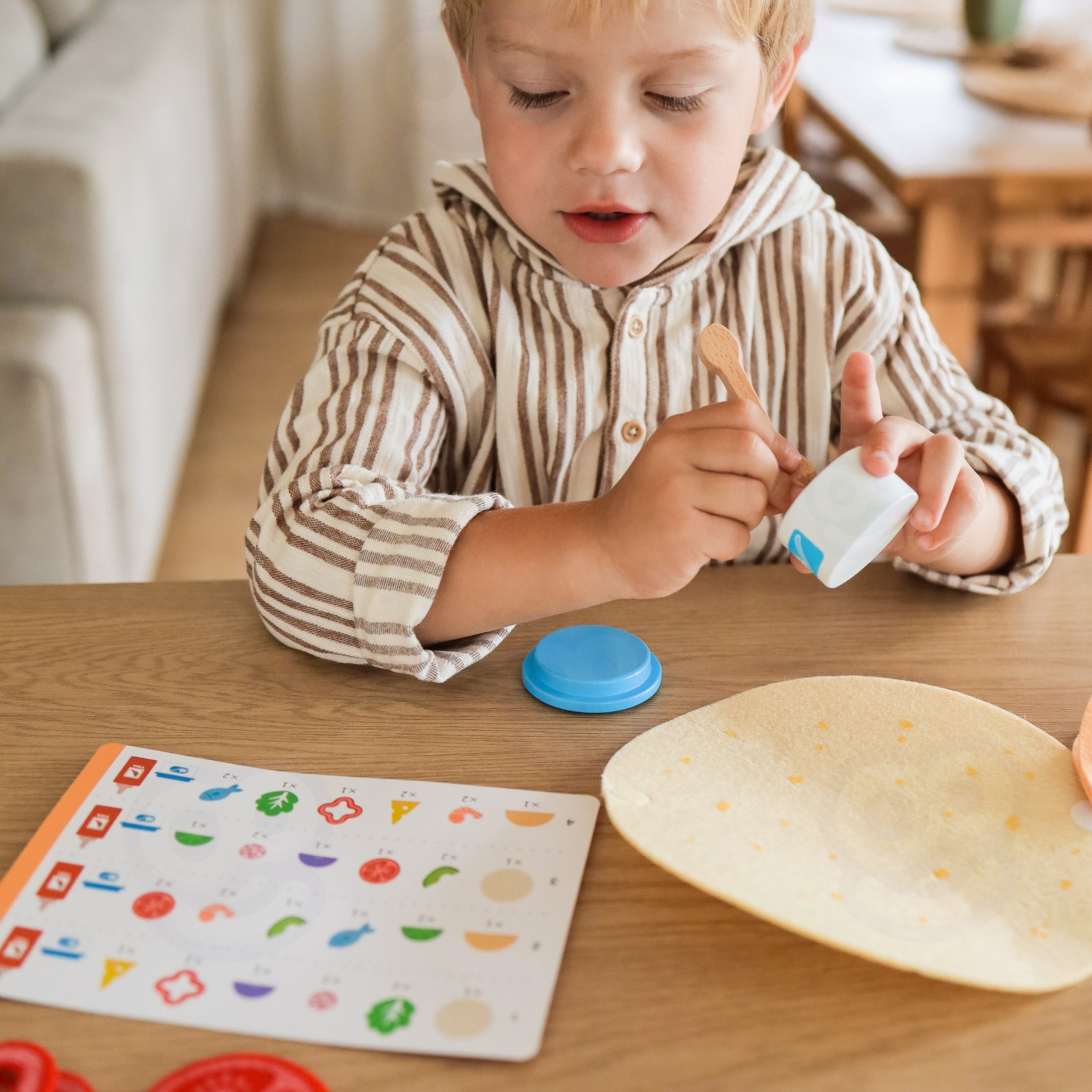•  - 20 erinevat puidust toidutükki, nagu avokaado, sibul, juust, kala jne