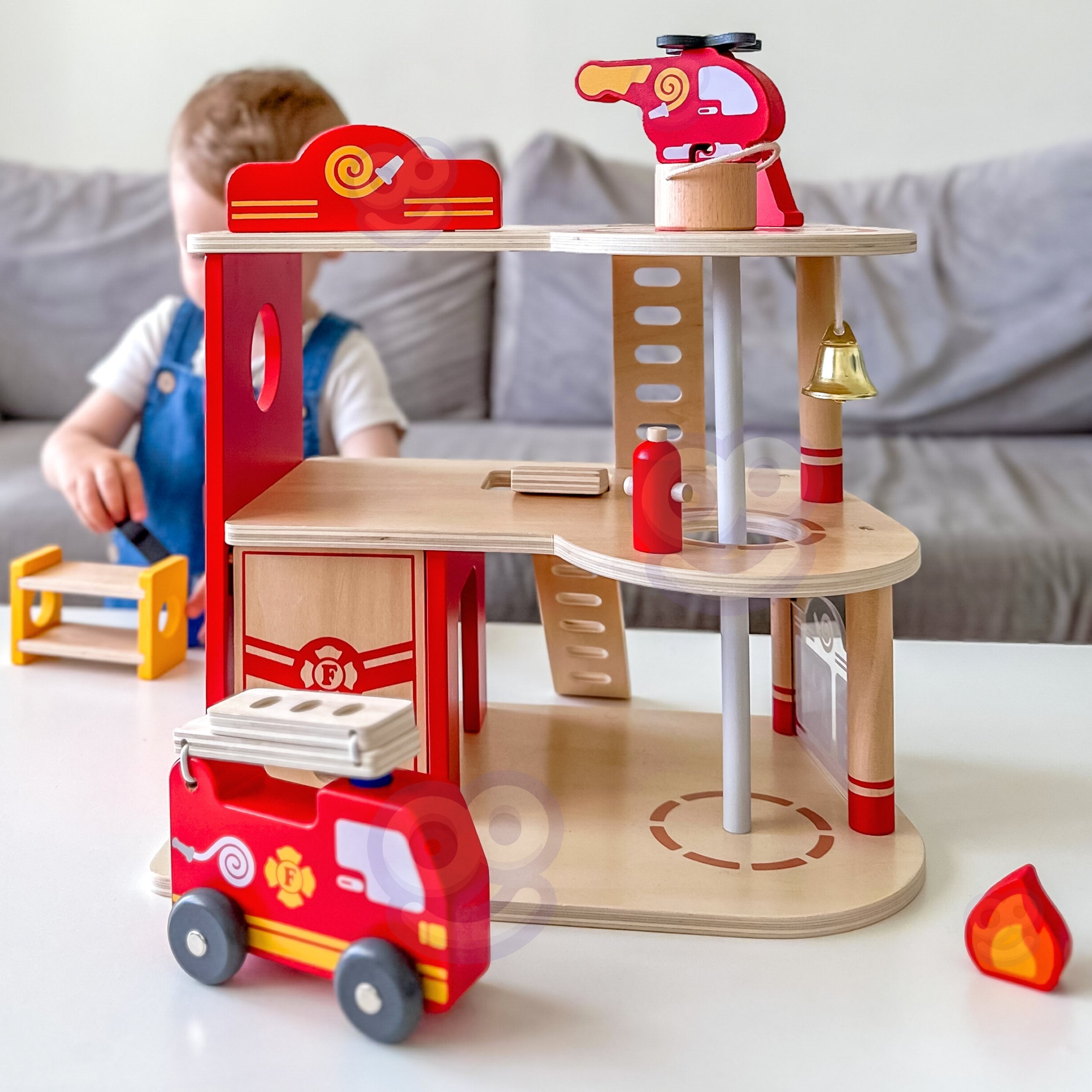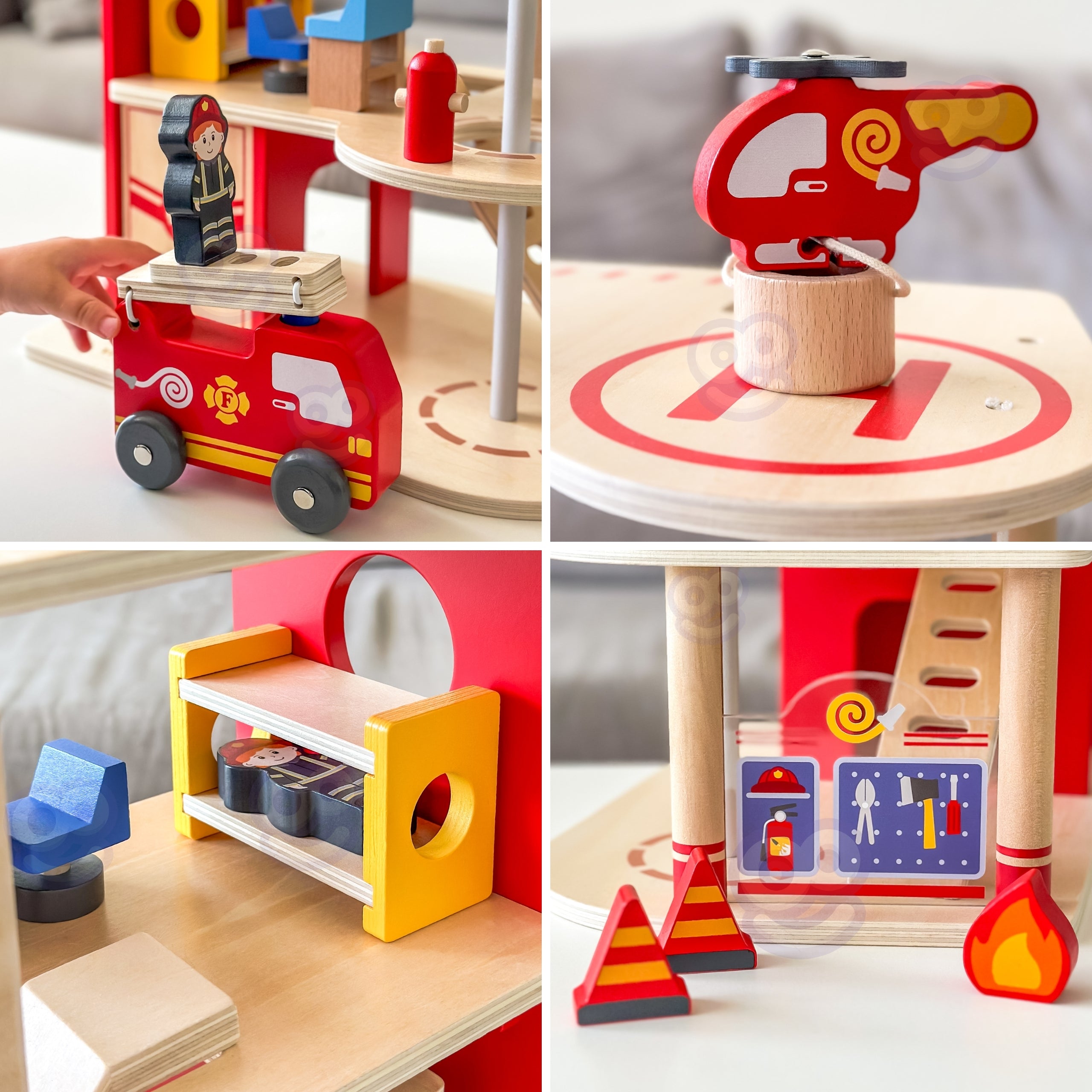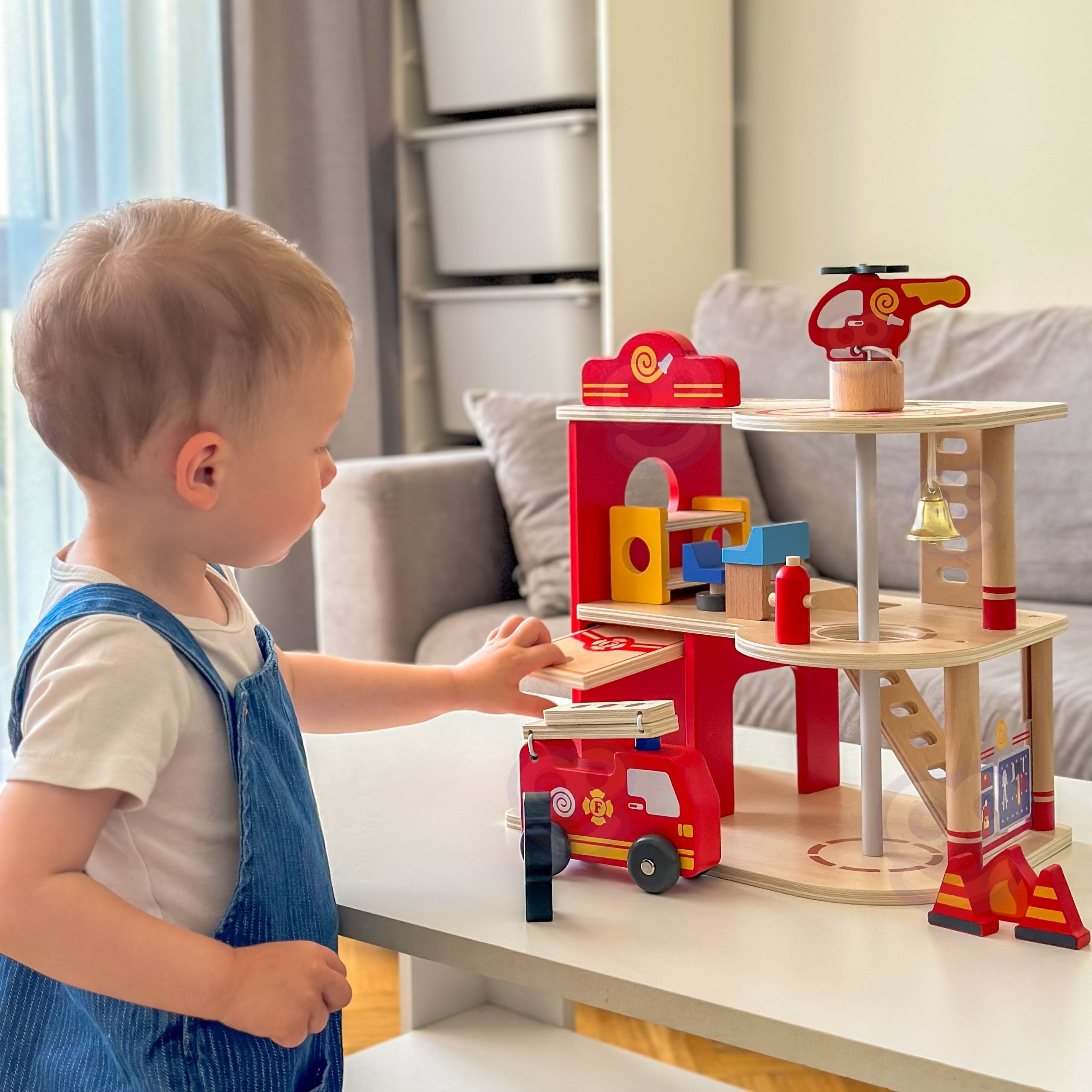 3-korruseline Tuletõrjevahi brändilt VIGA on suurepärane ettepanek väikestele kangelastele! See avar ja värviline konstruktsioon tagab tundide kaupa tegevust täis mängu päästmise ja teiste abistamise. Erinevate elementide ja tasemete abil saavad lapsed luua lugematul arvul päästmisstsenaariume, arendades samal ajal loovust ja mürgiteadmisi.